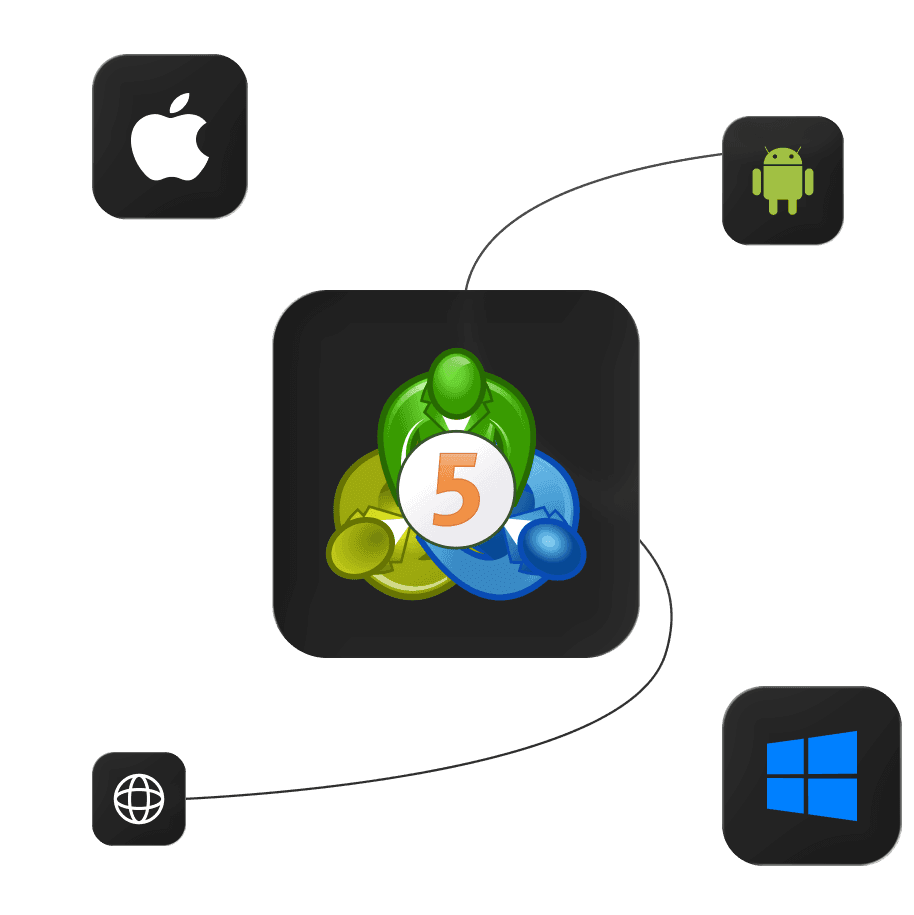 منصة MetaTrader 5 متاحة للتنزيل مجانًا لأي من أجهزتك، بما في ذلك أجهزة Windows، وMac، وAndroid، وiOS.