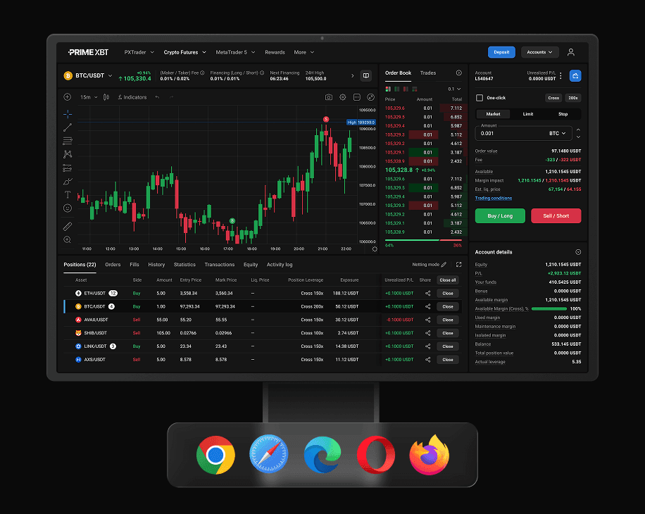 Trade like a pro, even on the go, with the PrimeXBT App for Android and iOS. Get access to advanced charting and expert tools, wherever, whenever, to make the most of market opportunities.