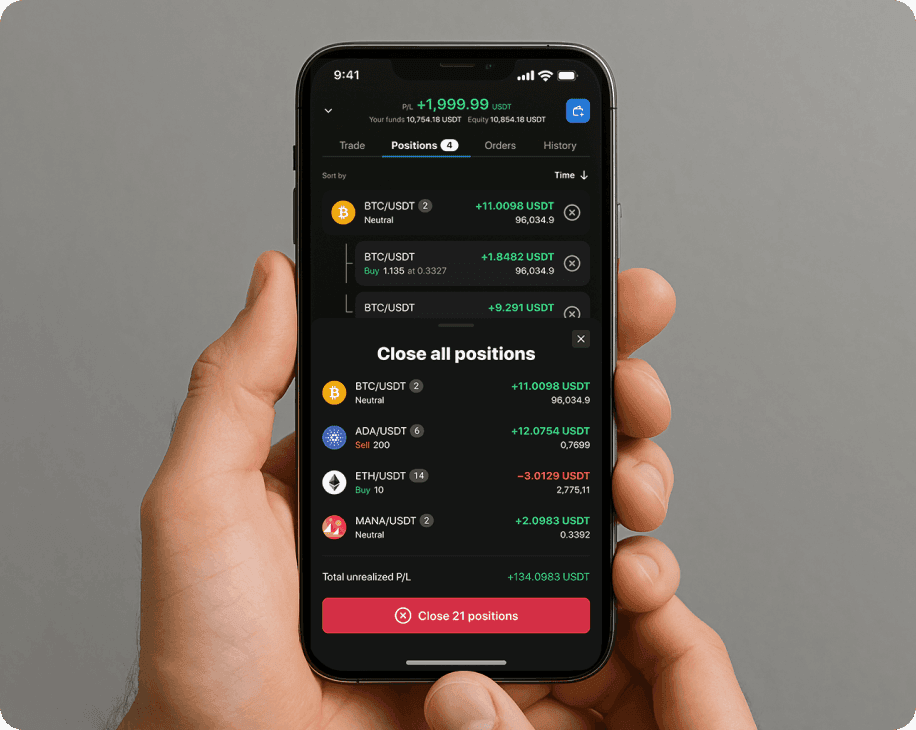 Chúng tôi giám sát các vị thế của bạn theo thời gian thực. Nếu ký quỹ của bạn giảm xuống dưới mức yêu cầu, các vị thế sẽ được đóng tự động. Ngay cả trong điều kiện thị trường biến động mạnh, chúng tôi sẽ bù trừ mọi số dư âm — bạn sẽ không bao giờ nợ chúng tôi tiền. Khoản thua lỗ của bạn chỉ giới hạn ở khoản tiền nạp đã nạp và tài khoản của bạn sẽ không xuống ngưỡng âm.